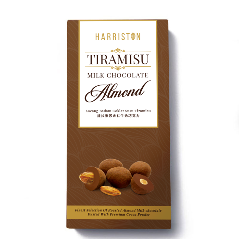 Discover a rich, indulgent uniquely Malaysian delight of perfectly toasted almonds smothered in Harriston’s smooth milk chocolate, and topped off with a light coating of tiramisu powder. Ideal on their or paired with coffee or tea, this delightful treat will become in an instant favourite. Comes in a portable pack perfect for picnics.
